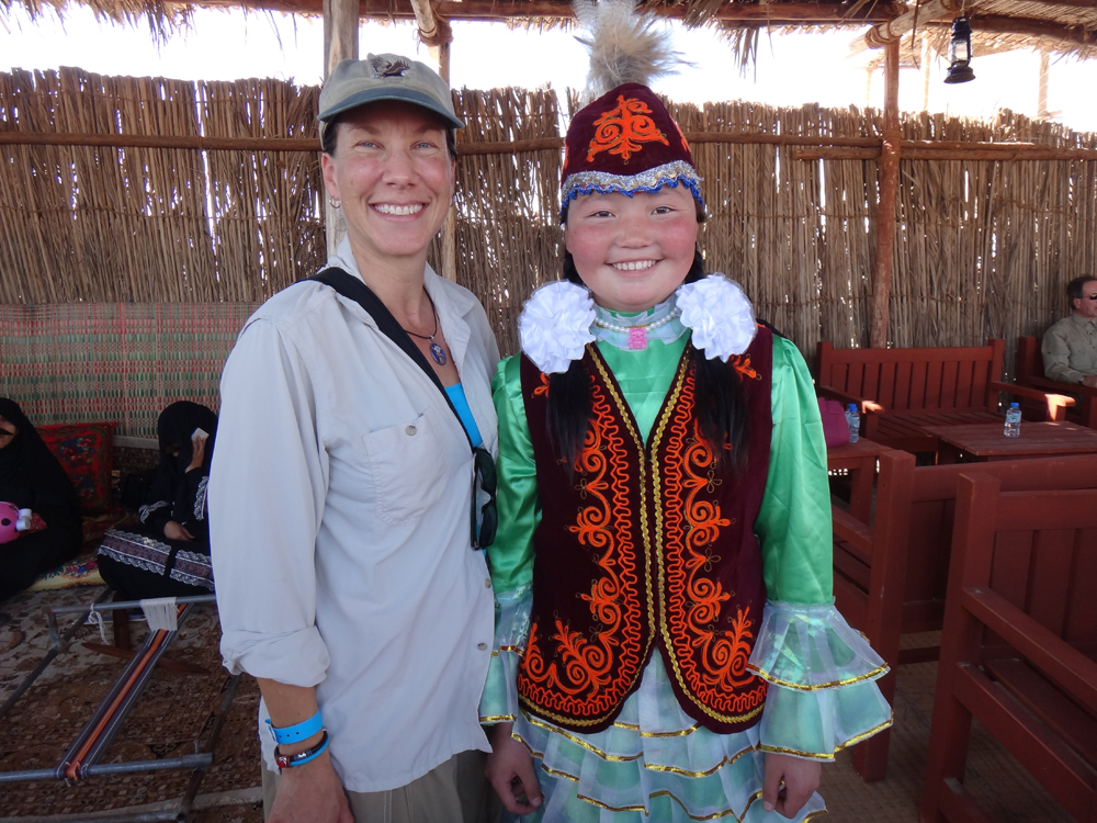 Anne with Asholpan, the young teen profiled in the movie, “The Eagle Huntress”.”