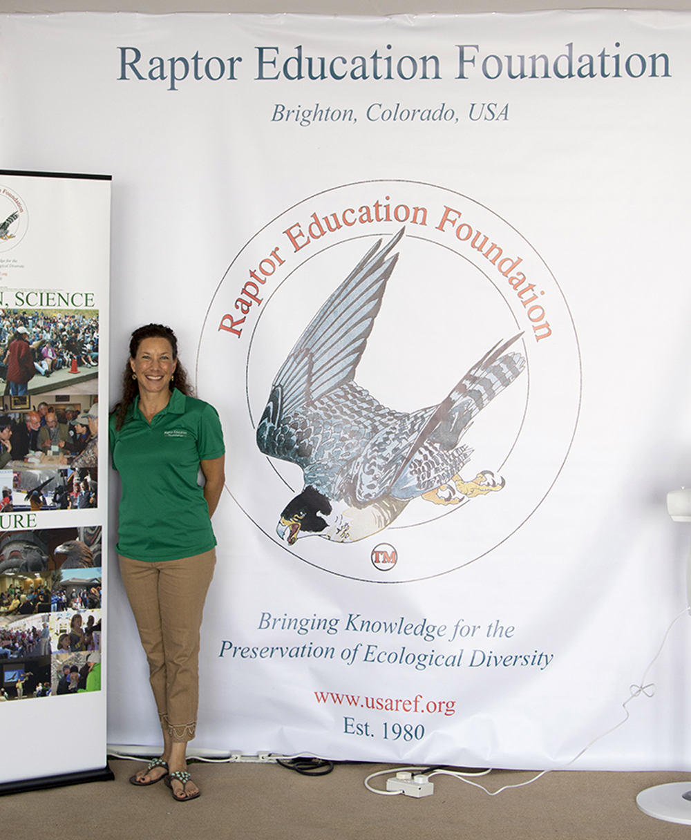 Anne Price’s passion in life is raptors; she began working with them when she was 12 years old. She grew up in the San Francisco Bay Area, volunteering at Marine World Africa USA, and received her falconry license when she was 16. She graduated from the University of Colorado with a B. A. in Environmental, Population and Organismic Biology. As an environmental scientist with Bechtel Corporation, she worked on a variety of projects, including Denver International Airport. She has been with the Raptor Education Foundation since 1986, where she serves as President & Curator of Raptors, Chief Lecturer, and heads the docent program. She lives in Littleton, Colorado with her husband, a son and daughter in college (and still occasionally home!), and her current falconry bird, a gyrfalcon-aplomado falcon hybrid.