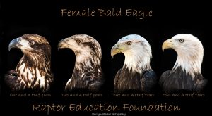 Come to Barr Lake State Park to meet America’s living national symbol and get the back story on how, why, when, and where this little piece of history took place. Oh, you will also meet our five year old female bald eagle and learn all about her as well. She has her fully mature plumage. See her progression below thanks to the photography of Marilyn Stevens. Click on image to enlarge.