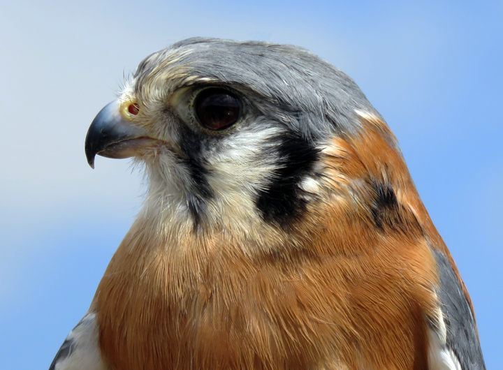 | American Kestrel: Falco sparverius DOB: Unknown Sex: Female Weight: 4.7 oz. Wingspan: 18 in.Our female kestrel was found in 2012 in Odessa, Nebraska, along the main street of this small town. She had sustained a fracture of her left humerus, close to her shoulder, and by the time she was brought to Raptor Recovery Nebraska in Elmwood, too much calcification had occurred to restore normal function and motion in her wing. She is partially-flighted, and arrived at REF in January 2013. |