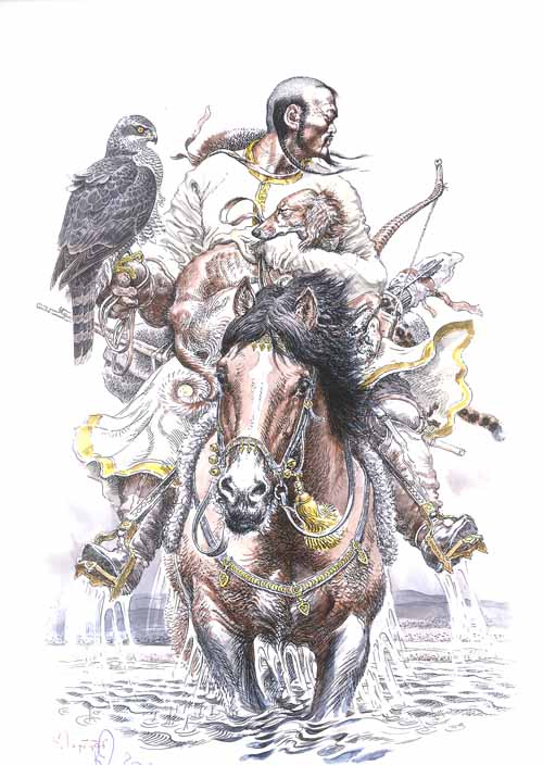 B2-Title:“Bazieri” Georgian hawker with sparrowhawk