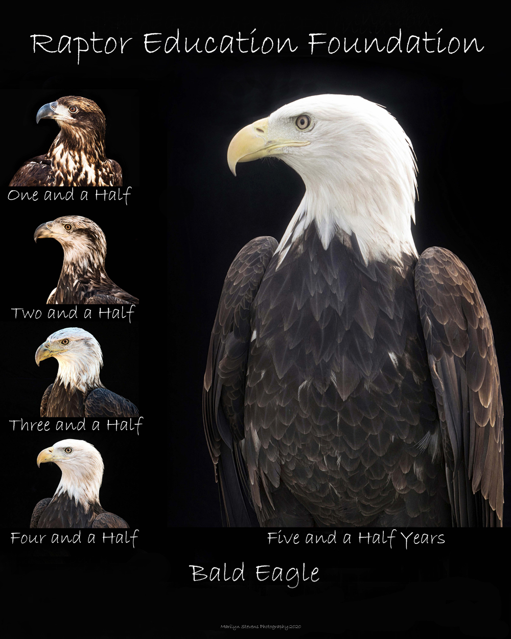 This beautiful five year study of our female bald eagle was photographed and composited by Marilyn Stevens. It measures 16″ x 20″ and is printed on fine photo paper with a “lustre” finish. The print will fit many ready made frames. To our knowledge this is the only available photographic sequence of an immature bald eagle showing off her plumage changes as she matures. Remember, both male and female look identical except for their size. The male is about 30% smaller. Our foil seal is attached to the bottom of each print. This is not shown in the image above. Limited offer and price includes shipping anywhere in the continental U.S.A. Please keep in mind that we are not an Amazon robotic facility. During holiday seasons shipping is processed as fast as our human system can fulfill your requests. The pandemic is also slowing things down. Thank you!